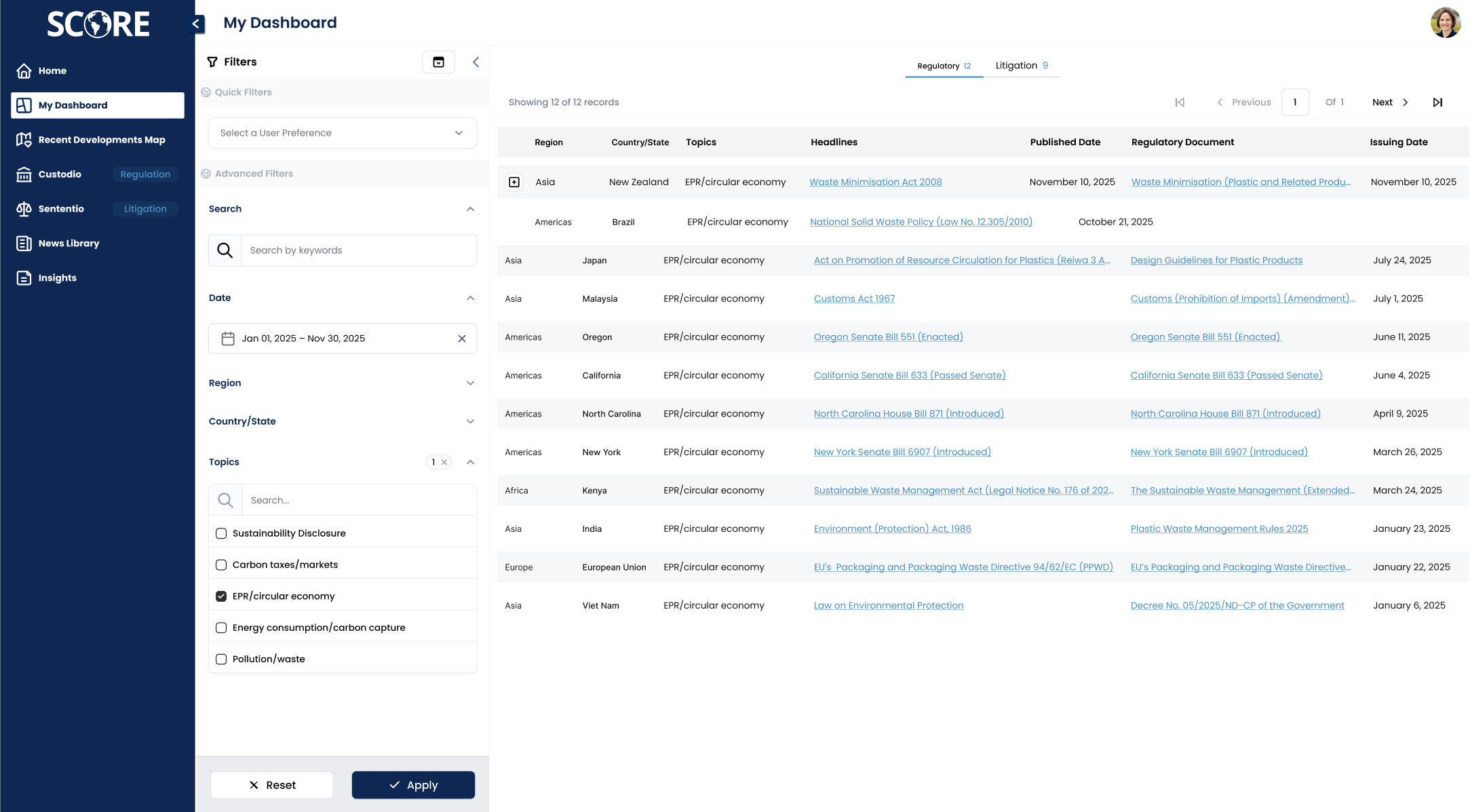 Regulatory and legal data is gathered from official repositories, regulators, and other sources across covered countries.
