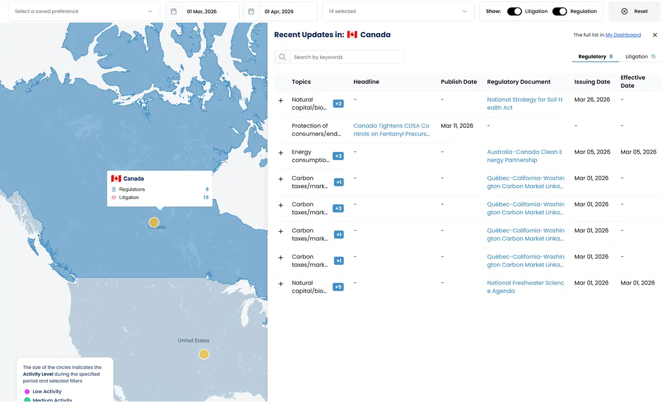 Standardized SCORE scans give internal teams and counsel a consistent, structured view by sector/jurisdiction.