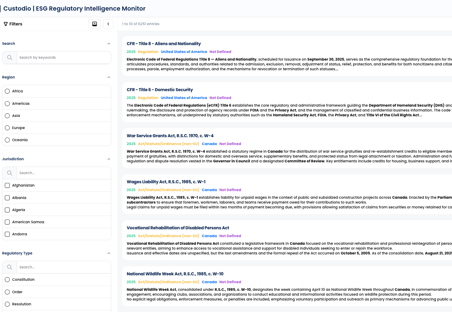 Regulatory and legal data is gathered from official repositories, regulators, and other sources across covered countries.